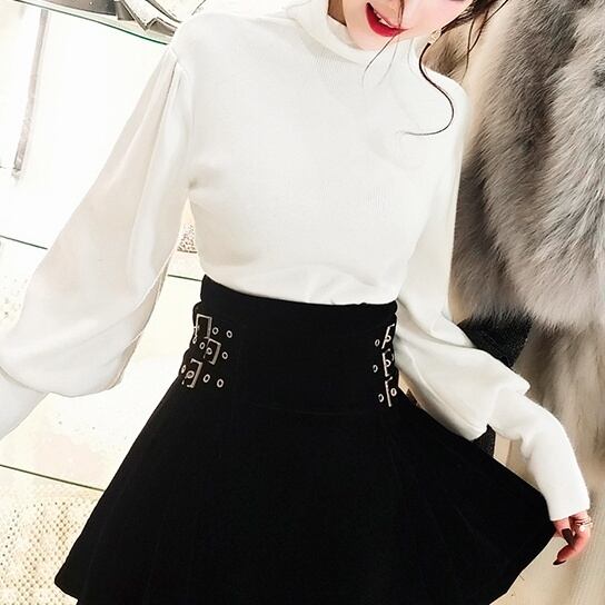 ハイネックデザインのゆったりしたランタンスリーブなので秋冬で着用いただけます。