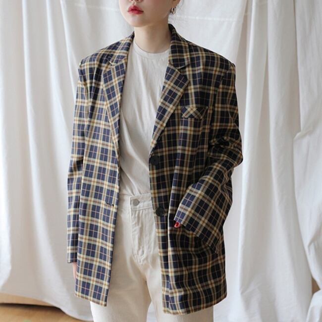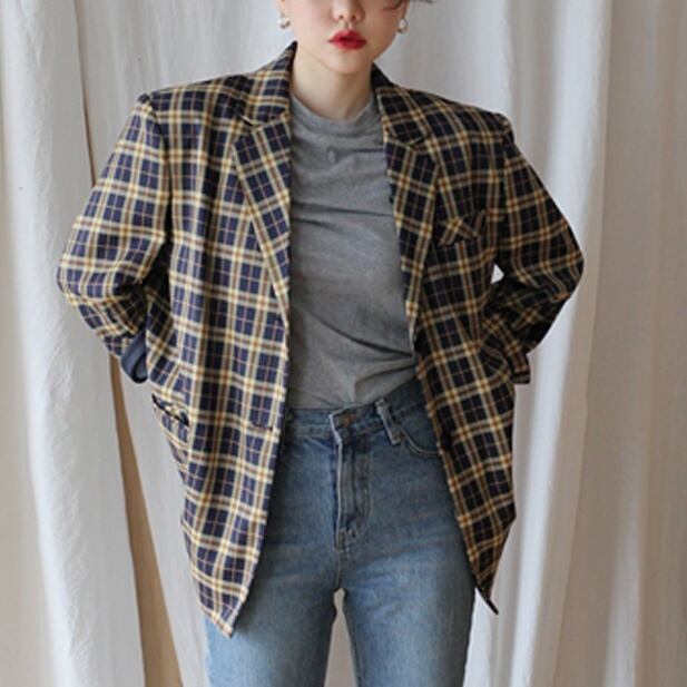 ロング丈チェック柄ジャケットになります。